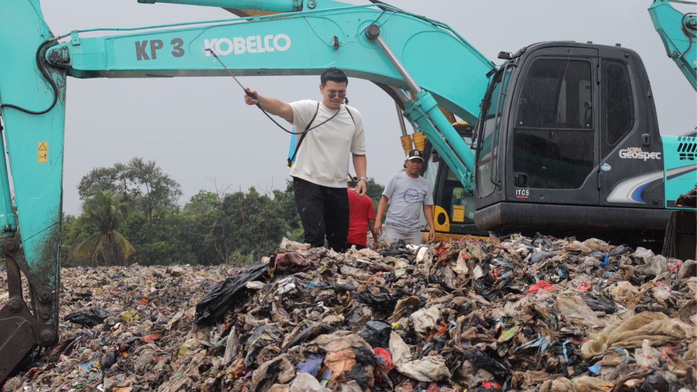 Kepala Dinas Lingkungan Hidup (DLH) Tangsel, Bani Khosyatullah menjelaskan, cairan ini difungsikan untuk menekan bau yang disebabkan oleh sampah.